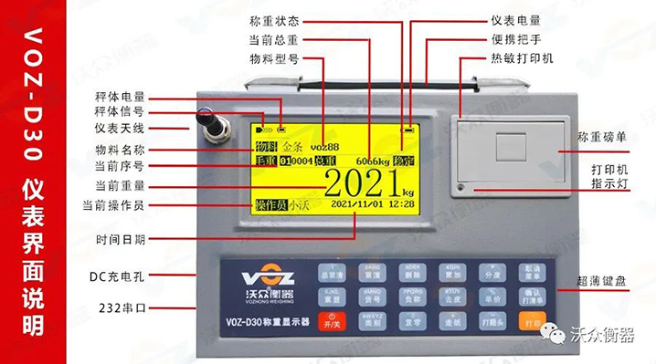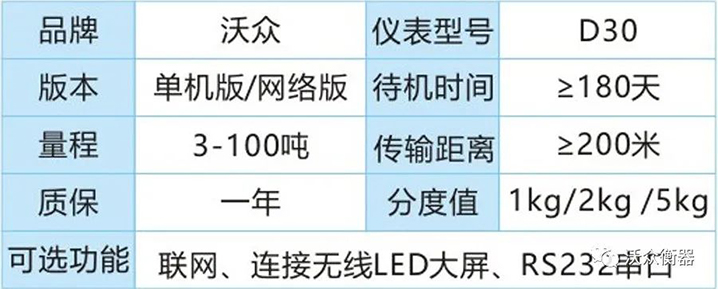 VOZ-D30系列電子吊秤量程:3t~100t(注:高噸位需要定制),性能指標(biāo)符合國(guó)際OIML 級(jí)秤標(biāo)準(zhǔn),適用于冶金、鐵路、倉(cāng)儲(chǔ)、港口、工礦企業(yè)等各種計(jì)量場(chǎng)合。